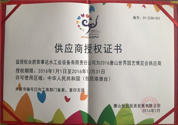 - 榮事達水工業公司成為2016唐山世界園藝博覽會直飲水供應商