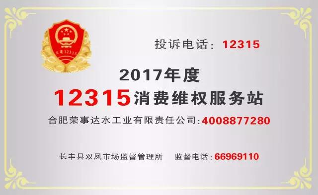 為了更好地貫徹中國消費(fèi)者協(xié)會(huì)消費(fèi)維權(quán)主題、切實(shí)保護(hù)消費(fèi)者合法權(quán)益,合肥市工商部門及12315指揮中心特授權(quán)榮事達(dá)水工業(yè)公司成為“12315消費(fèi)者維權(quán)服務(wù)站”、“12365質(zhì)量監(jiān)督服務(wù)站”,履行消費(fèi)者維權(quán)和質(zhì)量監(jiān)督服務(wù)工作。