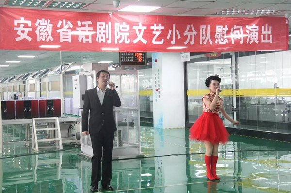 爵士舞《我的新衣》、歌曲《相親相愛》、朗誦《城市的描繪師》、團舞《歡聚一堂》、創意近景魔術、特色黃梅戲等形式多樣的精彩節目將傳統藝術與現代藝術創新融合,揚時尚蓄古韻,給人以耳目一新的全新視聽體驗,贏得了大家的連連掌聲。值得一提的是,生產制造中心總經理孫曉峰參與了黃梅戲的互動表演,孫總嘹亮專業的唱腔,臺下觀眾無不為其喝彩。表演過后,大家仍意猶未盡,津津樂道。技術員小王說道:“這次表演我感受到了政府和安徽省話劇院對我們普通職工群眾的關懷,心里很暖,可以鼓足干勁投入工作了?!?/P>