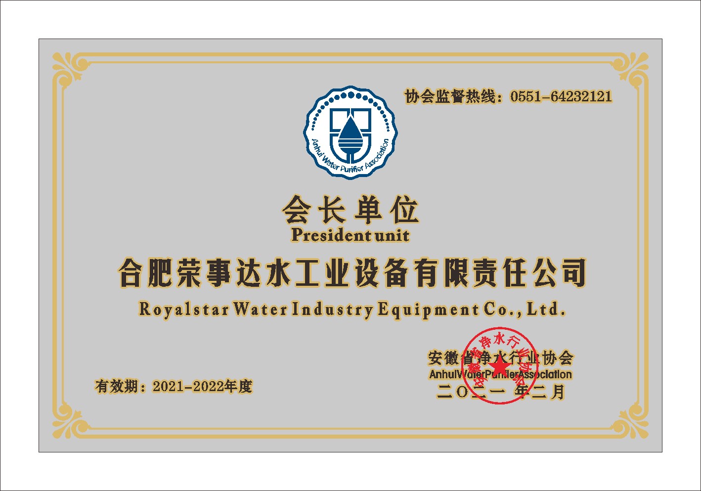安徽省凈水行業(yè)協(xié)會會長單位...