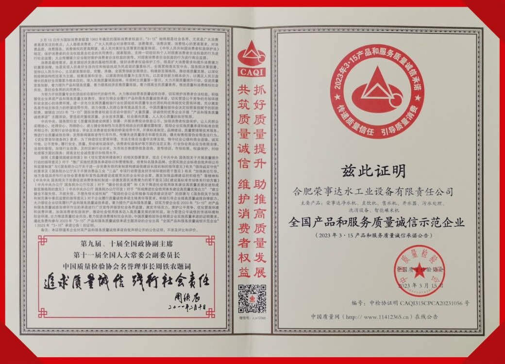 全國凈水行業(yè)質(zhì)量領先品牌