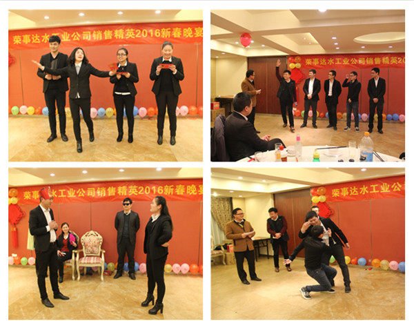 晚上六時,全體銷售精英參加了晚宴,王總在晚宴上作重要發言,他指出,2015年,在各部門的共同協作之下,榮事達凈水機網點覆蓋率穩步提升,3T模式在終端引發銷售狂潮,事業部銷售業績再創新高。他希望在2016年,廣大銷售精英將榮事達優質的產品、服務與終端營銷有機結合,奮勇爭先、昂首闊步刷新銷售戰績。
