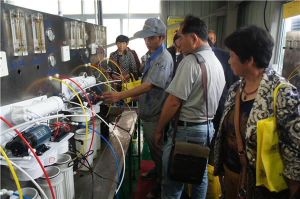 在產品展廳,接待人員給消費者解說了榮事達全線產品類別,并講解了純水機、超濾機、飲水機、一體機等產品的不同功能及適用地區。參觀中,許多鄉鎮地區消費者反映家里井水水垢水堿太嚴重、雜質多,詢問有沒有適合其使用的凈水機,接待人員向其推薦了榮事達純水機,詳細講解了純水機運用RO反滲透技術、五級過濾系統,能夠高效去除水垢、水堿、農藥、化肥、細菌、重金屬等有害物質的過濾效果。了解了產品種類,消費者們更想觀看生產流程,對產品質量心中有數。渦陽、來安等地消費者參觀生產車間,零距離觀看了生產線上員工操作的場景,以及檢測線上壓力表、漏電開關、插座、氣管等各項檢測儀器運行工作狀態,全面見證了榮事達凈水機自動化、智能化的生產線、檢測線。