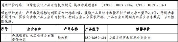 • 熱烈祝賀榮事達純水機入選2017年第一批綠色制造示范名單