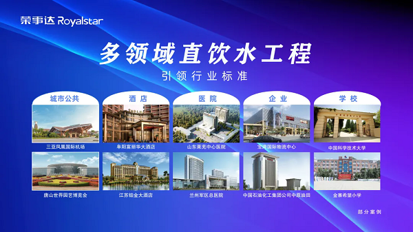 榮事達水工業公司作為凈水領域的佼佼者,已經擁有二十年的行業積累。其產品覆蓋有千萬家庭、2000+企事業單位3500+校園等場所。此外,榮事達水工業公司還獨立設計施工大型直飲水工程,包括秦始皇兵馬俑博物館、唐山世界園藝博覽會、三亞鳳凰國際機場、合福高鐵沿途站點等知名項目,以及埃塞俄比亞總統府、馬來西亞巴生港、贊比亞恩多拉機場、巴基斯坦默蒂亞里等海外項目,贏得了廣泛的贊譽和信賴。