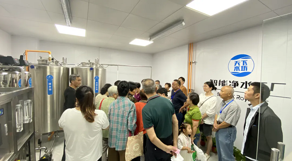 工作人員向居民詳細介紹了智能凈水工廠的工藝流程、技術(shù)優(yōu)勢以及后期的維護管理等。居民在見證了榮事達智能凈水工廠的整體規(guī)模實力后,對凈水工廠的水質(zhì)安全十分安心,表示今后家庭飲水就喝榮事達智能凈水工廠的直飲水。