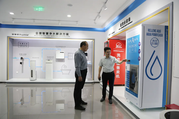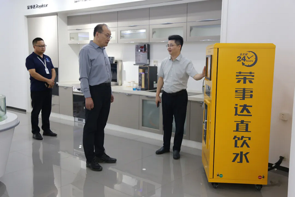 領導一行參觀了榮事達智慧水世界展廳,聽取了集團的發展歷程以及令人矚目的成就,全面了解了社區智慧飲水系統、校園直飲水系統、全屋智慧凈水系統等榮事達十大水處理系統,領導們對公司的綜合實力給予了高度評價與認可。