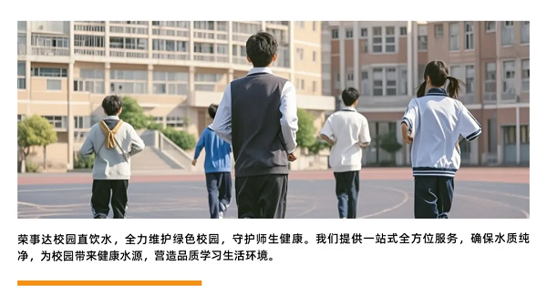 此外,榮事達(dá)校園直飲水還可根據(jù)學(xué)校的具體需求量身定制直飲方案。從需求分析、方案設(shè)計(jì)、設(shè)備選型到安裝調(diào)試、后期運(yùn)維,榮事達(dá)提供了一站式、全方位的服務(wù),確保了直飲水項(xiàng)目的順利實(shí)施與高效運(yùn)行。