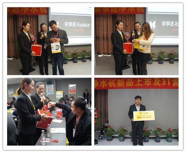 為應(yīng)對2016凈水市場快速發(fā)展的要求,榮事達(dá)精心推出R8櫥下智能純水機(jī)、箱體LED純水機(jī)、速熱飲水機(jī)等多款新品,適應(yīng)細(xì)分市場需求,助力終端網(wǎng)點(diǎn)提高市場占有率。在隨后的新品培訓(xùn)環(huán)節(jié),榮事達(dá)渠道開發(fā)部王部長和董部長對新品功能特點(diǎn)、市場定位進(jìn)行了詳細(xì)講解。新款純水機(jī)配備RO反滲透技術(shù)及五級過濾系統(tǒng),融智能顯示、自動(dòng)化沖洗、防漏水設(shè)計(jì)于一體,并為用戶提供了櫥上、櫥下安置的不同選擇;新款飲水機(jī)采用厚膜加熱管原理,三秒即熱,并可實(shí)現(xiàn)多檔水溫水量調(diào)節(jié),使得家庭飲水更方便。新品踐行了榮事達(dá)產(chǎn)品定制的研發(fā)理念,類型多樣,既包含了可攻克農(nóng)村地區(qū)水壓不足不穩(wěn)狀況的自吸增壓凈水機(jī),也囊括了滿足城市居民追求健康時(shí)尚消費(fèi)需求的高端機(jī)型,參會客戶通過了解,紛紛表示定制新品市場定位準(zhǔn)確,前景極為廣闊。