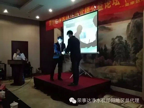 - 榮事達水工業(yè)公司發(fā)起的“樂享凈水——讓快樂與生命同在”助殘公益項目自正式啟動以來,受到全國各地代理商的鼎力支持。日前,“樂享凈水”榮事達凈水機助殘行動走進湖南邵陽,向邵陽特殊教育學校捐贈了多臺凈水設備。特殊教育學校負責人現(xiàn)場接受了捐贈,同時,在榮事達凈水機邵陽所有經(jīng)銷商的見證下,榮事達西南西北地區(qū)總監(jiān)孫長華為邵陽管理中心頒發(fā)了“樂享凈水 愛心代理商”的獎杯。此次捐贈活動受到當?shù)孛襟w的爭相報道,“樂享凈水”助殘活動備受當?shù)鼐用窈迷u。榮事達凈水機邵陽營銷管理中心負責人介紹,中心成立后在邵陽地區(qū)大力普及凈水,改變當?shù)鼐用駛鹘y(tǒng)飲水方式,據(jù)了解,中心曾向一百多個鄉(xiāng)鎮(zhèn)敬老院捐贈百臺凈水器,為孤寡老人送上一份愛心;他們也將繼續(xù)開展“樂享凈水”助殘行動,并呼吁更多社會力量加入到活動中去,努力幫助更多的殘疾人士喝上安全水。