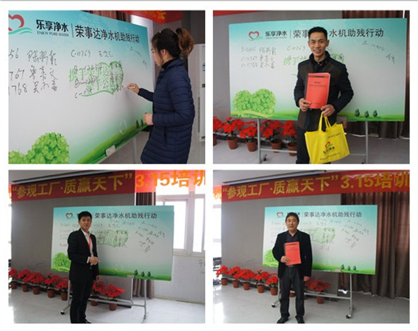 與會的許多意向客戶在一天半的觀摩、學習中,了解了榮事達水工業公司的過硬的軟、硬實力,見證了榮事達凈水機卓越的產品質量和完善的售后保證,更感受了公司作為凈水名企的品牌信譽、行業地位、社會擔當。會后,近九成意向客戶立即簽訂了合作協議,與榮事達攜手合作。為了酬謝廣大客戶,榮事達精心準備了四輪抽獎環節,多款精美禮品悉數送出。其中,20多位合作客戶在終極大獎環節幸運抽得公司精心準備的4套凈水設備,用于開展“樂享凈水”助殘行動。